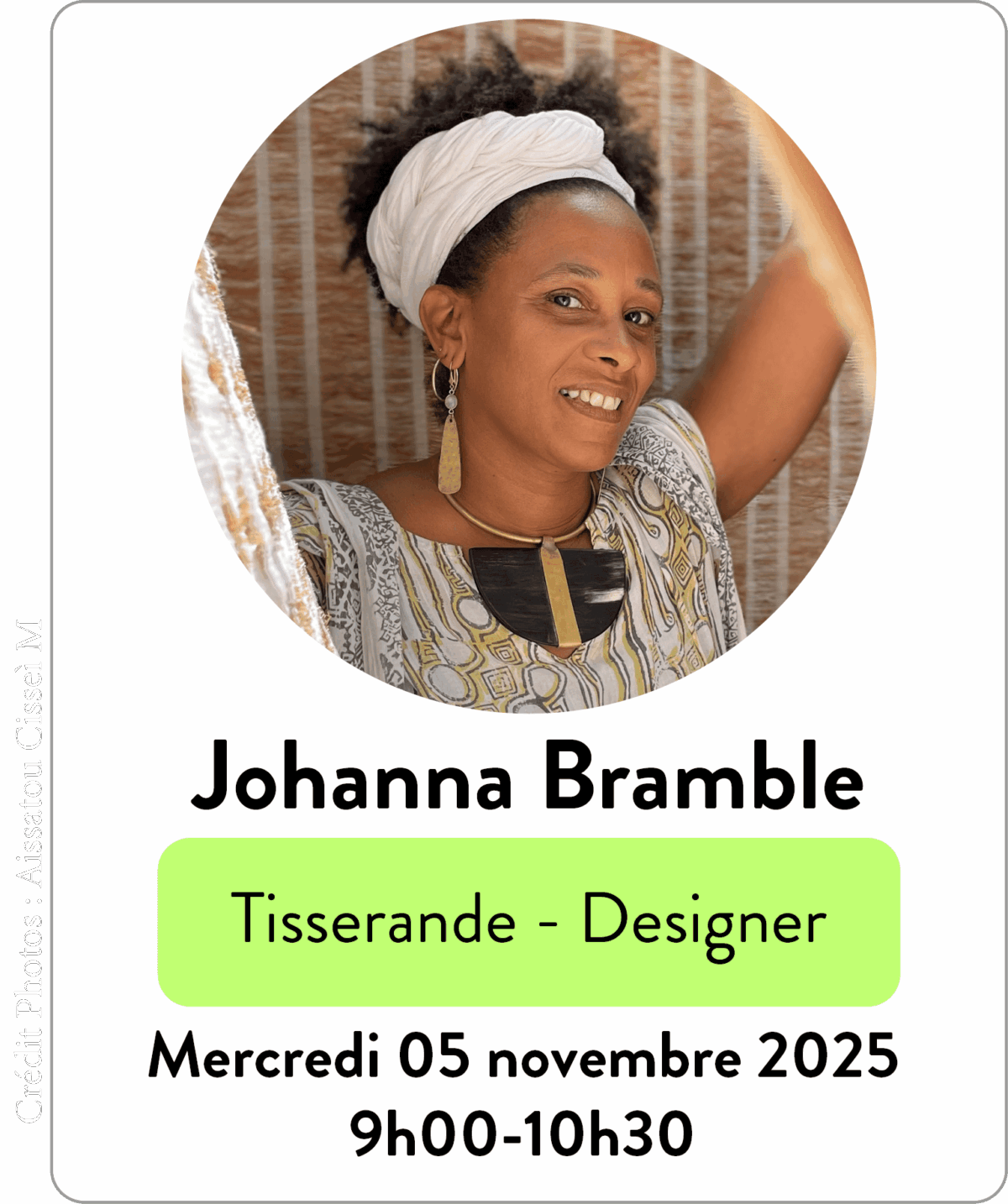 Langage à part entière, le tissage nous donne à voir des liens insoupçonnés entre les cultures et nous libère des frontières. Telles les navettes du métier à tisser, en dialogue incessant entre passé et présent, tradition et modernité, artisanat et industrie, le tissage porte notre humanité universelle et singulière. Du Mali au Cap-Vert, de Paris à Dakar, des Antilles à la Côte d’Ivoire, des identités tissées nous parlent. *Quelle(s) part(s) de nos singularités faisons-nous émerger à travers nos pratiques; quels fils choisissons-nous de tendre, quels procédés mettons-nous en œuvre pour la faire rayonner ?