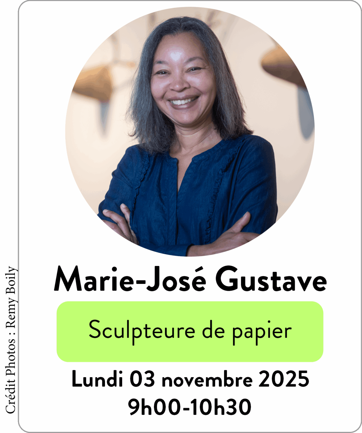 Marie-José Gustave construit son histoire transgénérationnelle avec le médium papier. Elle explique le processus de réflexion et décrypte les enjeux qui sous tendent ses œuvres ainsi que les techniques textiles qui y sont associées.